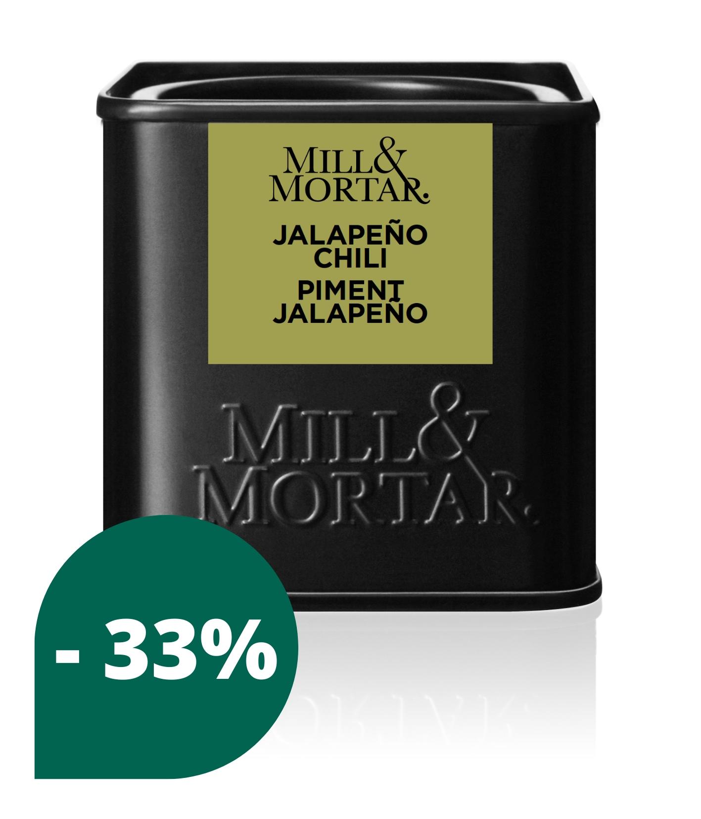 Jalapeño Chili is een van de bekendste en meest geliefde chilipepers uit Mexico. Het Deense topmerk Mill & Mortar selecteerde deze prachtige chili voor zijn perfecte balans tussen warmte en zoet. Met een medium-hete pittigheid van 2.500 tot 10.000 Scoville, brengt deze chili een lichte kick aan al je gerechten.