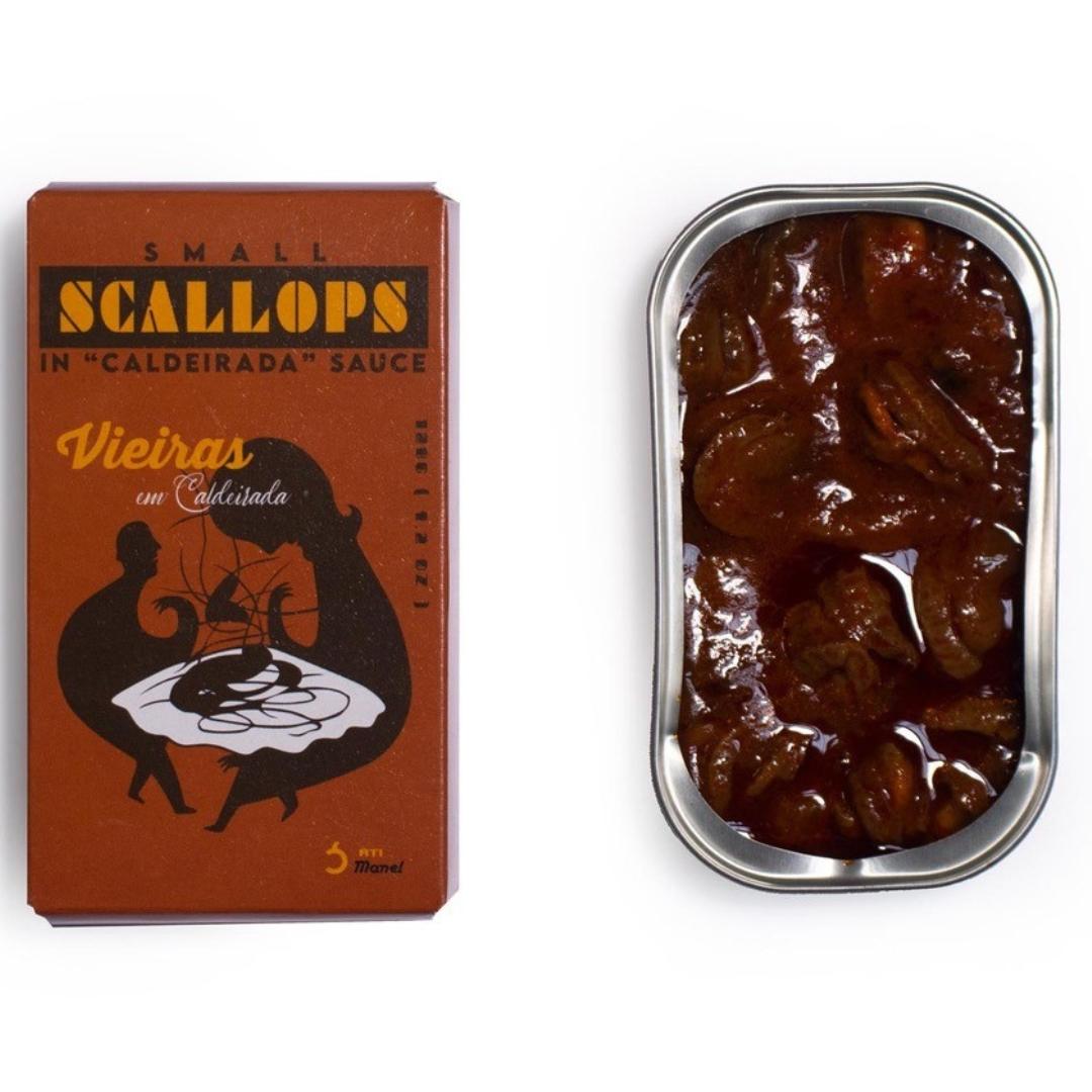 Sta je klaar om iets nieuws te ontdekken en jezelf onder te dompelen in de verfijnde smaak van de traditionele Portugese keuken? Deze sint-jacobsvruchten in caldeirada-saus van Ati Manel zijn een ode aan Portugese lekkernijen. Dit blikje is een herinterpretatie van een eeuwenoud vissersgerecht. Het resulteert in een uiterst verfijnde combinatie van een van de meest voedzame zeevruchten en een traditionele stoofpotsaus die bol staat van smaak.